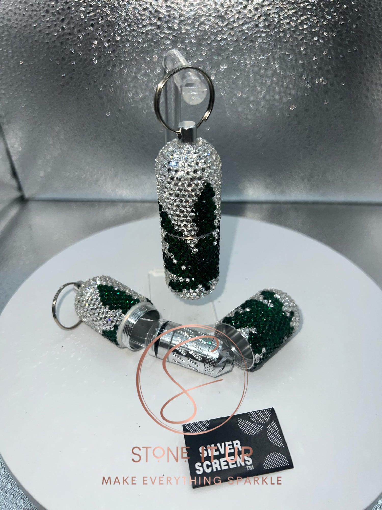 Stainless steel lip balm container keychains blinged out with high quality glass...
