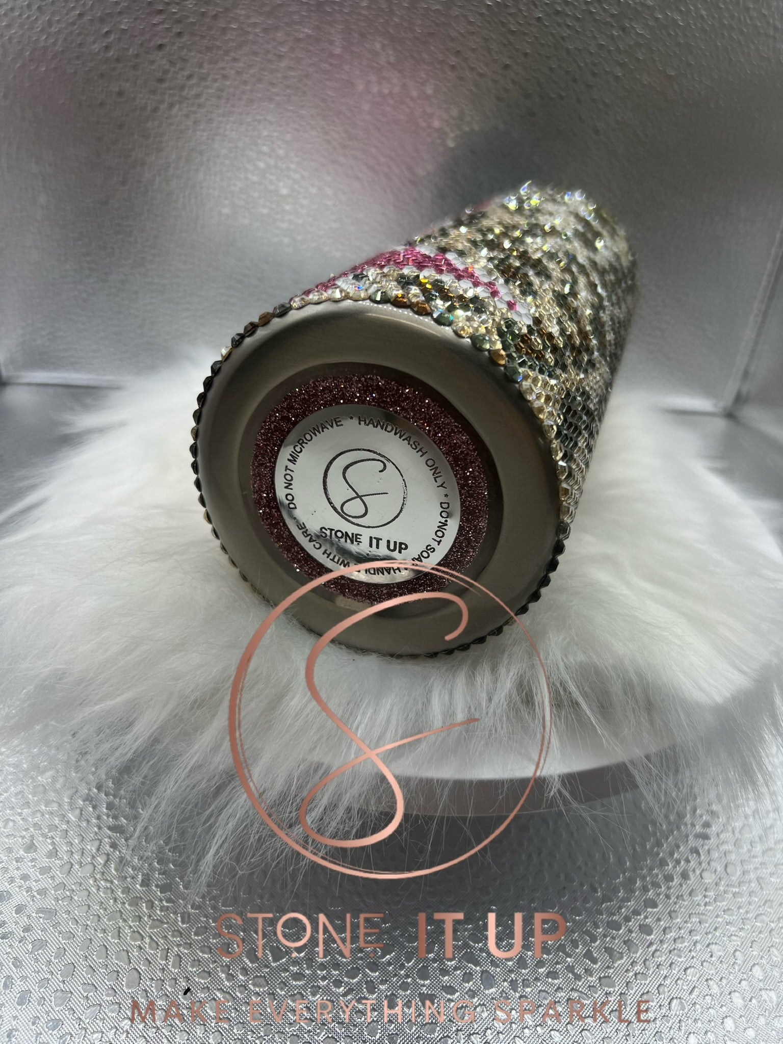 20oz Cheetah Breast Cancer Ribbon Blinged Out Tumbler