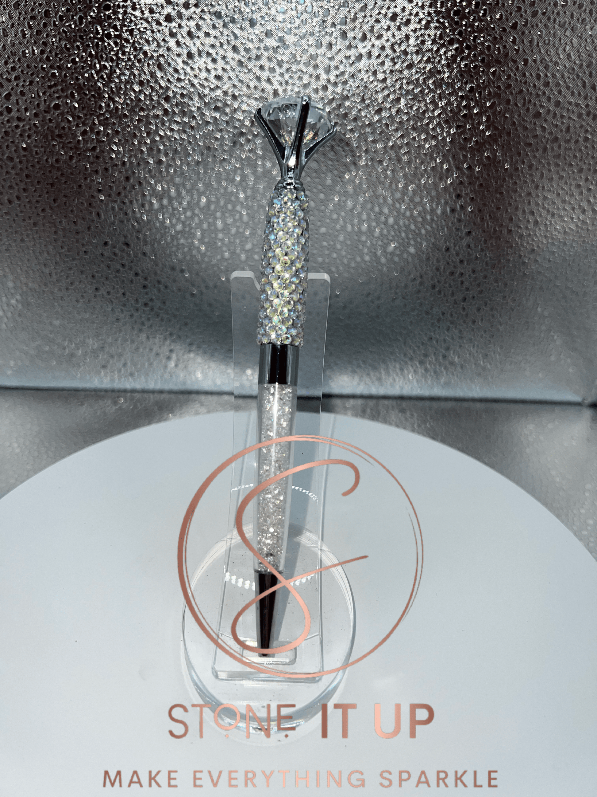 This ball point pen features a full barrel bling design, adorned with dazzling Starry Sky glass stones. These stones are carefully applied by hand using Liquid Fusion, ensuring a high-quality finish.
